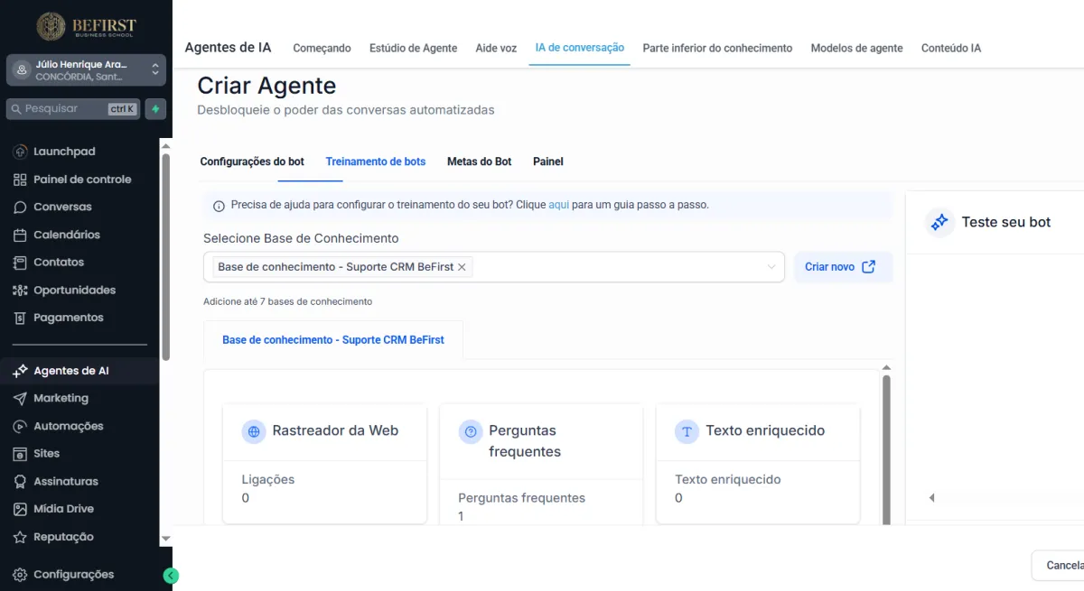 O Agente de IA do CRM BeFirst automatiza interações em WhatsApp, Instagram, Messenger e chat do site, atendendo 24/7 sem equipe extra.