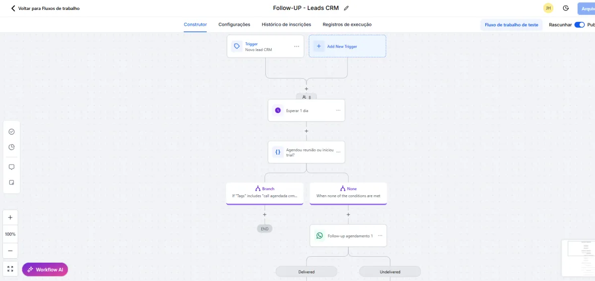 Crie Pipelines ilimitados para gerir seus lead, crie campos customizados, aplique tags inteligentes e automatize a movimentação de leads e preenchimento de campos.