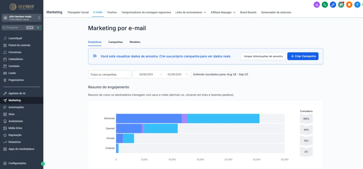 Crie campanhas de e-mail para nutrição de leads e follow-UP.