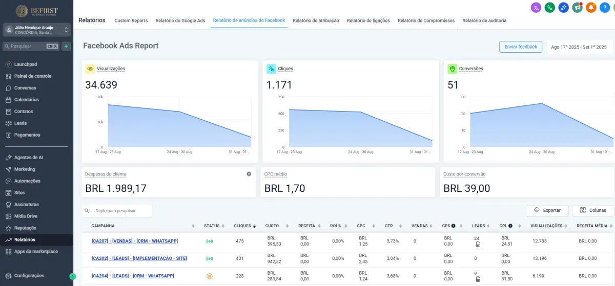 Com o CRM BeFirst você tem as métricas de suas campanhas de anúncios na palma de sua mão e de forma integrada.